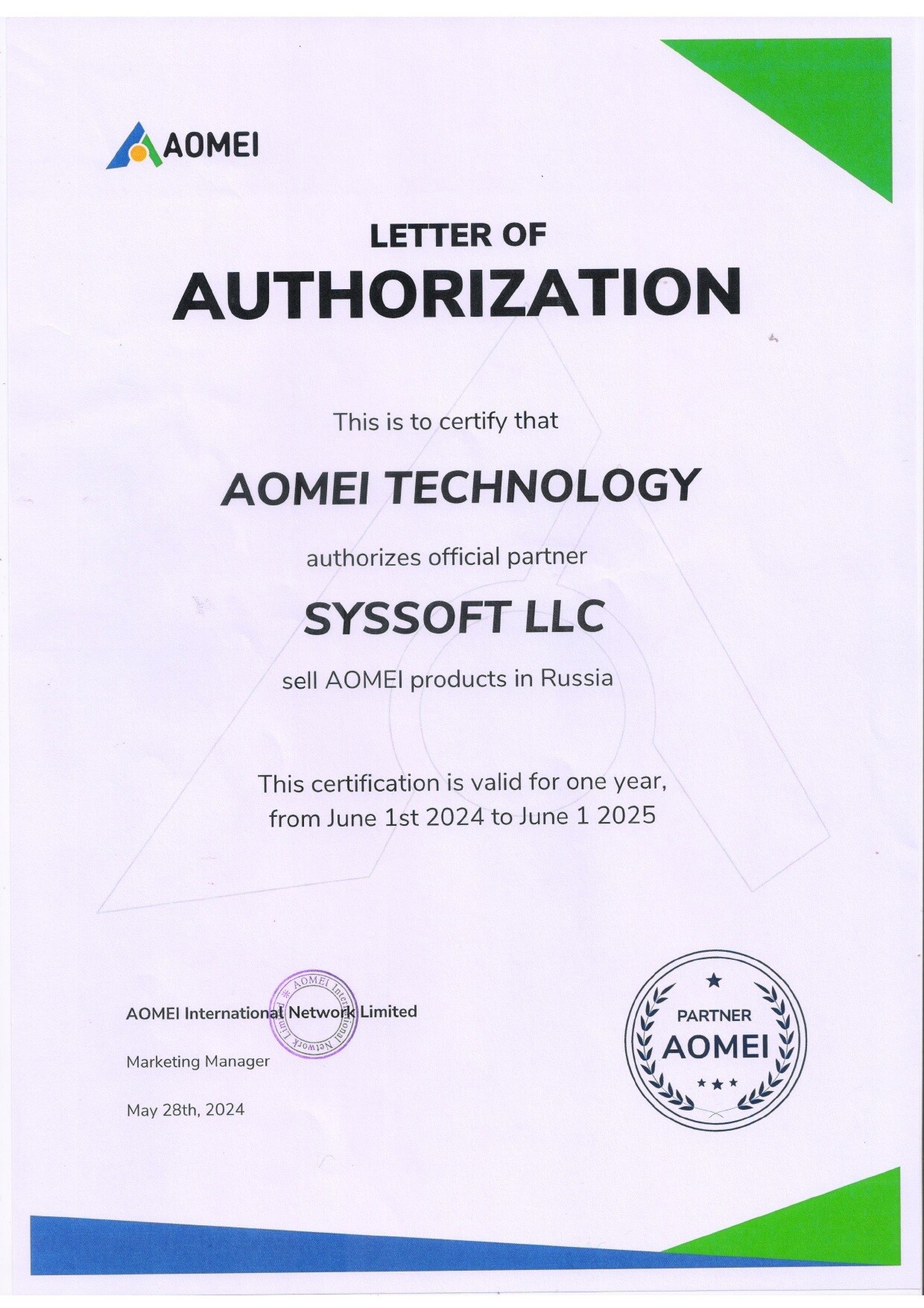 Мы являемся единственным прямым партнером AOMEI Tech на территории РФ.